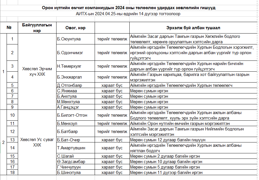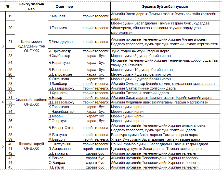 Орон нутгийн өмчит компаниудын ТУЗ-ын гишүүдийн мэдээлэл