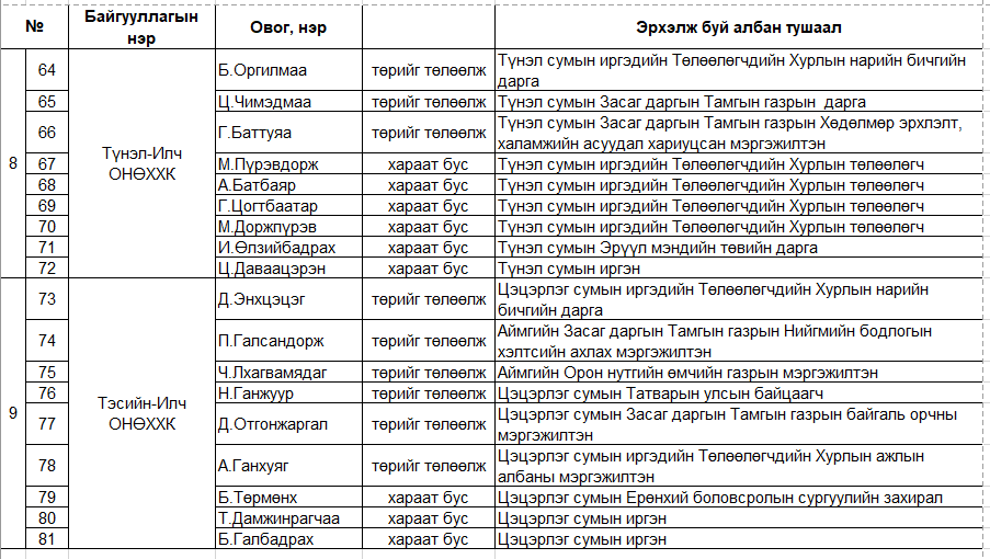 МОНГОЛ УЛСЫН “ТӨРИЙН АЛБАНЫ ӨДӨР”-ИЙГ УГТАН ТӨРИЙН АЛБАН ХААГЧИД ТАНГАРАГ ӨРГӨЛЛӨӨ