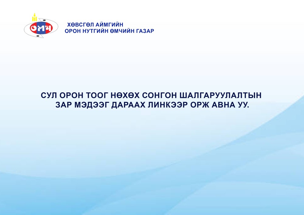 Төрийн захиргааны удирдах болон гүйцэтгэх албан тушаалын сул орон тоонд төрийн жинхэнэ албан хаагчийг шилжүүлэн томилох зар (khovsgol.gov.mn)