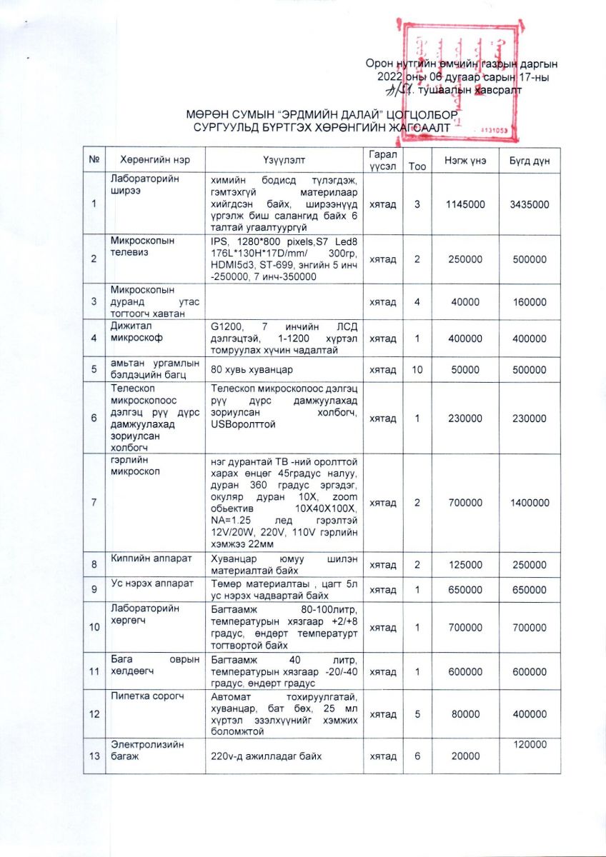 Орон нутгийн хөрөнгө оруулалтаар "Эрхэм баян-Эрдэм" хөтөлбөрийн хүрээнд нийлүүлсэн тоног төхөөрөмжийг боловсрол, соёлын байгууллагуудад бүртгүүллээ.