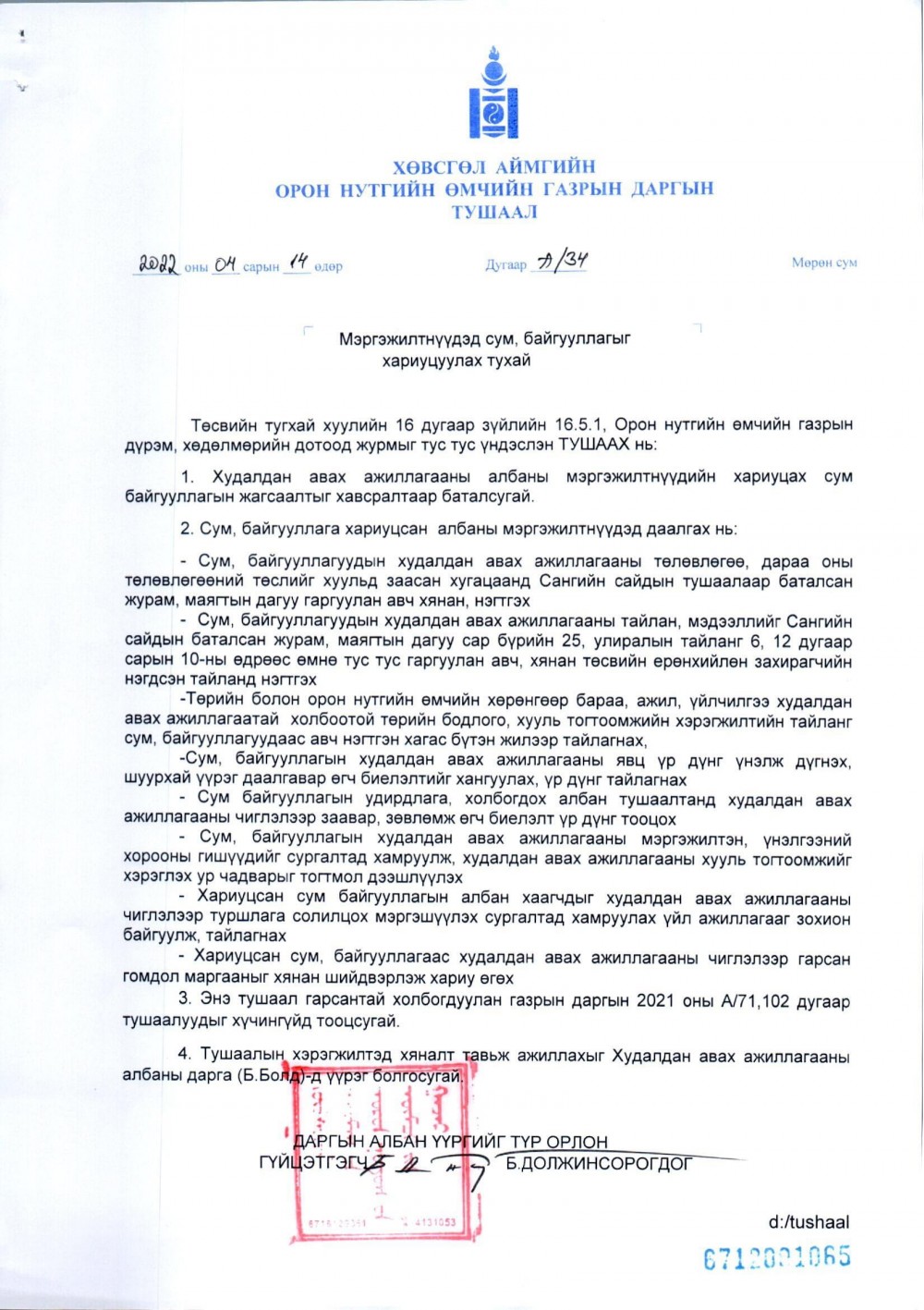 Тодруулга өгөх албан тушаалтны нэр хаяг