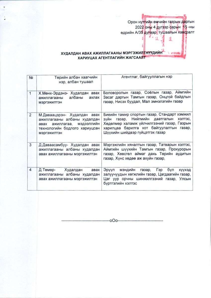 МОНГОЛ УЛСЫН “ТӨРИЙН АЛБАНЫ ӨДӨР”-ИЙГ УГТАН ТӨРИЙН АЛБАН ХААГЧИД ТАНГАРАГ ӨРГӨЛЛӨӨ