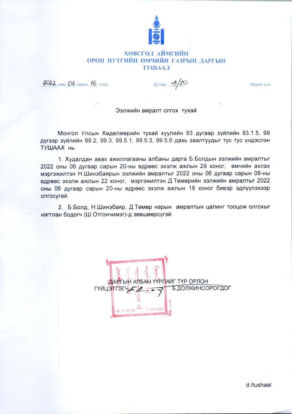 Ээлжийн амралт олгох тухай