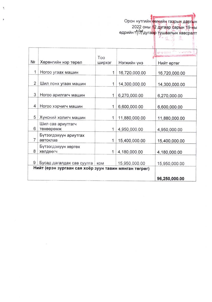 Тендер шалгаруулалтын үр дүн