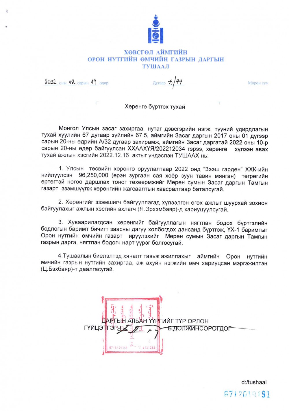 Газрын даргын тушаал